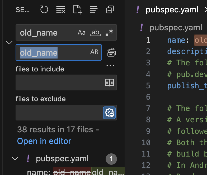 1. pubspec.yaml –> den Projektnamen (name: Projektname) kopieren